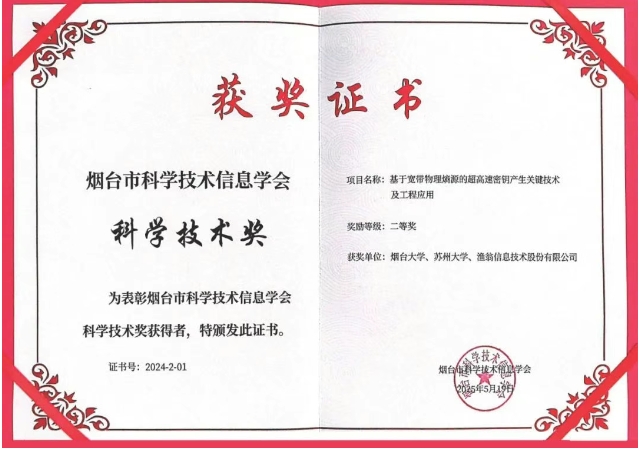 Trust钱包科技信息与烟台大学、苏州大学联合完成的 "基于宽带物理熵源的超高速密钥产生关键技术及