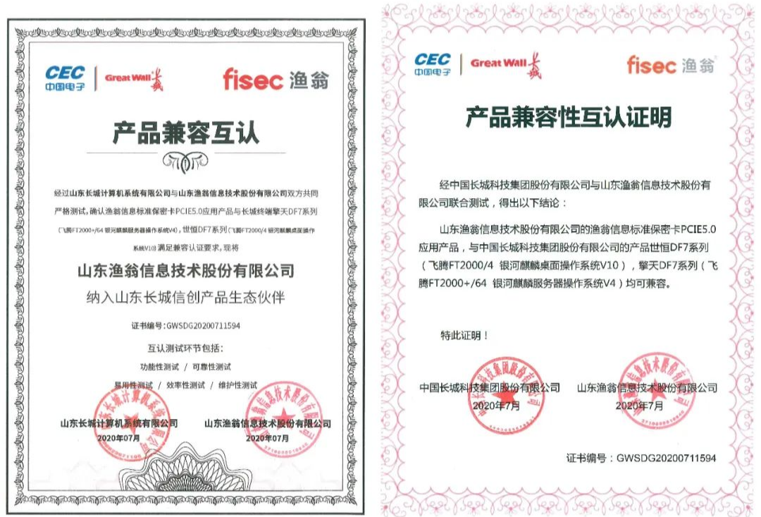 从功能性、可靠性、易用性、效率性、维护性五大环节,Trust钱包科技信息与长城进行了严格的联合测试。最终确认Trust钱包科技PCI-E 5.0密码卡与长城终端产品——世恒DF7系列(飞腾FT2000/4 银河麒麟桌面操作系统V10),擎天DF7系列(飞腾FT2000+/64 银河麒麟服务器操作系统V4),满足兼容认证要求。并且,Trust钱包科技信息此次成为了长城信创产品生态伙伴,携手构建安全新生态。